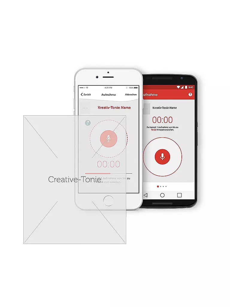 Mit der dazugehörigen, kostenlosen Smartphone-App können eigene Sprachaufnahmen aufgezeichnet und dem Kreativ-Tonie zugewiesen werden.