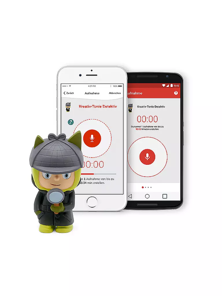 Mit der dazugehörigen, kostenlosen Smartphone-App können eigene Sprachaufnahmen aufgezeichnet und dem Kreativ-Tonie zugewiesen werden.