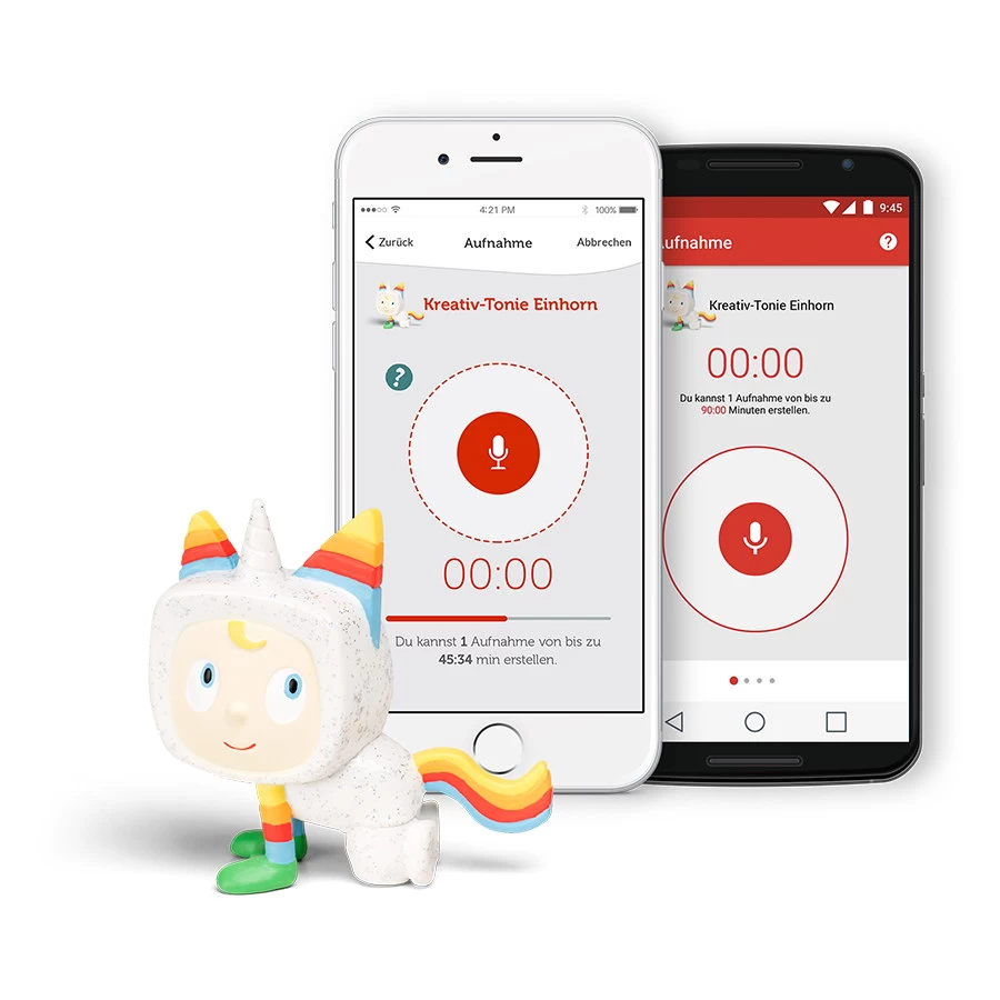 Mit der dazugehörigen, kostenlosen Smartphone-App können eigene Sprachaufnahmen aufgezeichnet und dem Kreativ-Tonie zugewiesen werden